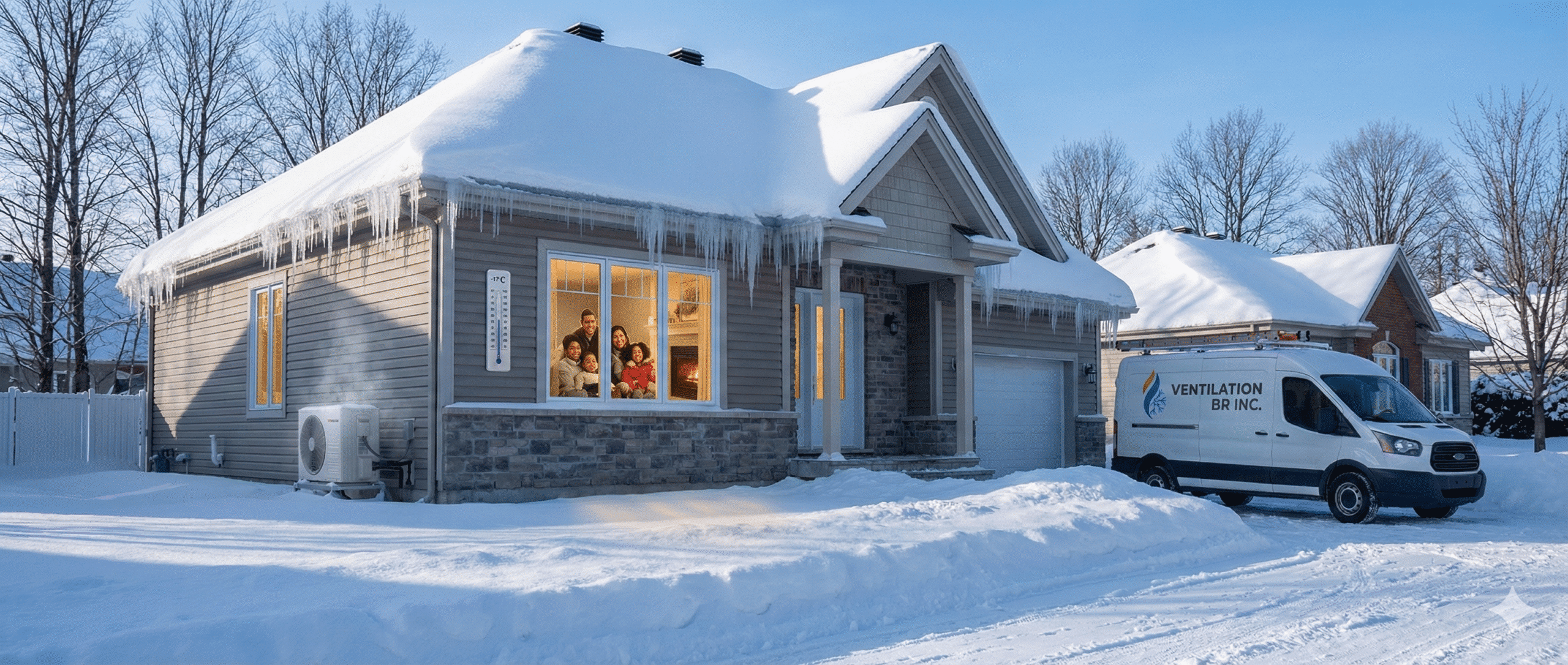 Les thermopompes nouvelle génération sont spécifiquement conçues pour ce type de climat. Les modèles que nous installons chez Ventilation BR maintiennent leur efficacité jusqu’à -30°C. Comment? Grâce à des compresseurs à vitesse variable et des technologies de dégivrage avancées qui s’adaptent aux conditions extérieures.